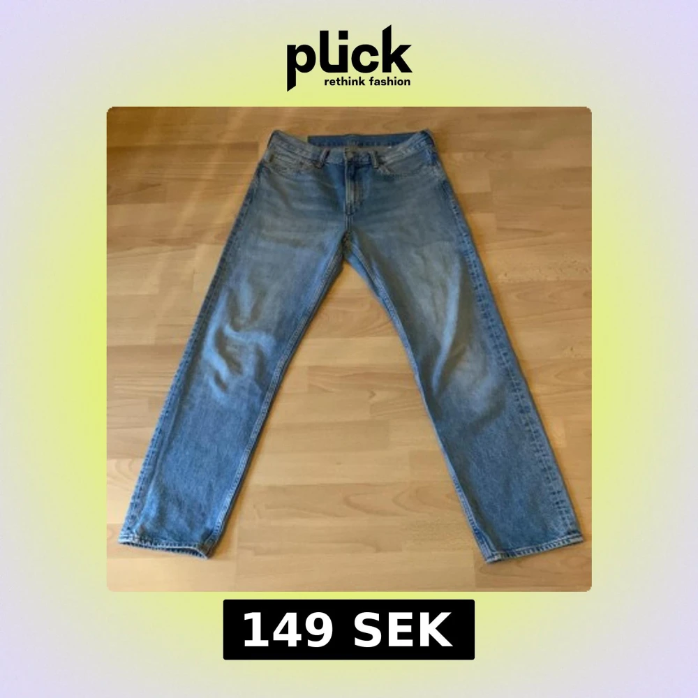 Säljer ett par klassiska blå jeans från H&M med relaxed fit. Jeansen har fem fickor, raka ben och normal midja. Perfekta för en avslappnad stil och passar till det mesta. Enkel design utan slitningar eller extra detaljer.