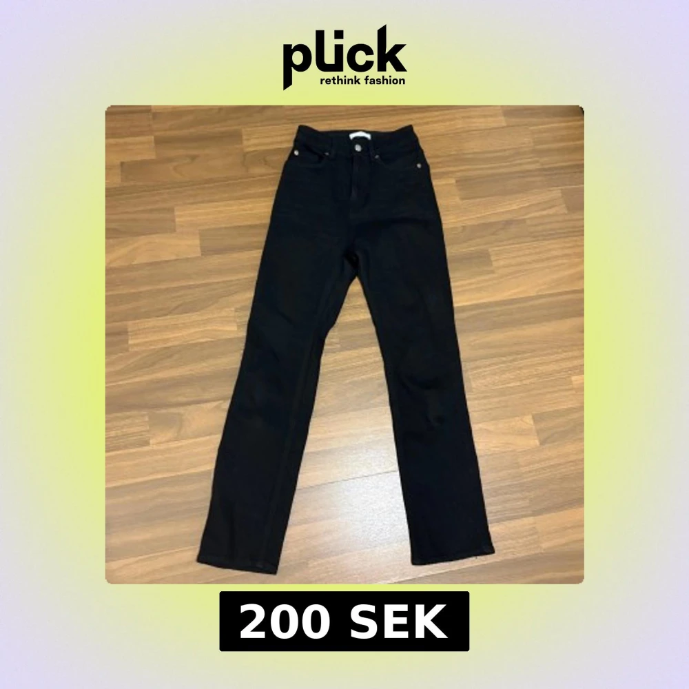 Svarta jeans byxor med medelhög midja och lite kortare nertill från H&M i storlek 32. Använda endast 2-3 gånger.