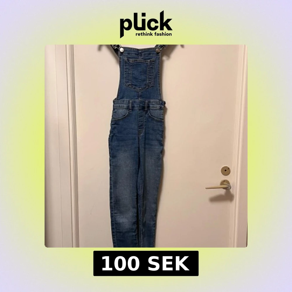 Säljer en snygg blå jeansbyxdress från H&M i storlek 32. Byxdressen har klassiska justerbara axelband med metallspännen, en stor ficka på bröstet och flera fickor framtill. Materialet är jeans med en cool tvättad look som ger en avslappnad vibe.