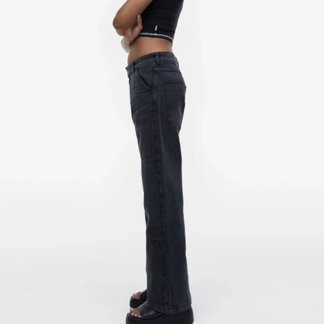 Helt nya jeans från H&M. Köpta för ordinarie pris 899kr men passade inte i längden så testar att sälja dom här innan jag klipper av dom på längden🩷Mitt pris är 450kr men går att diskutera!! Slutsålda i storlek på hemsidan.