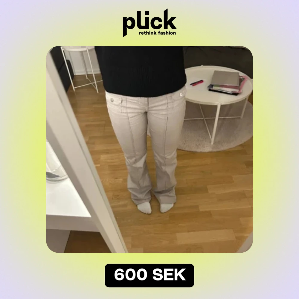 Säljer dessa trendiga beiga jeansen från H&M, storlek 32 men passar mig som är en 36 eftersom de är väldigt stretchiga. 600kr