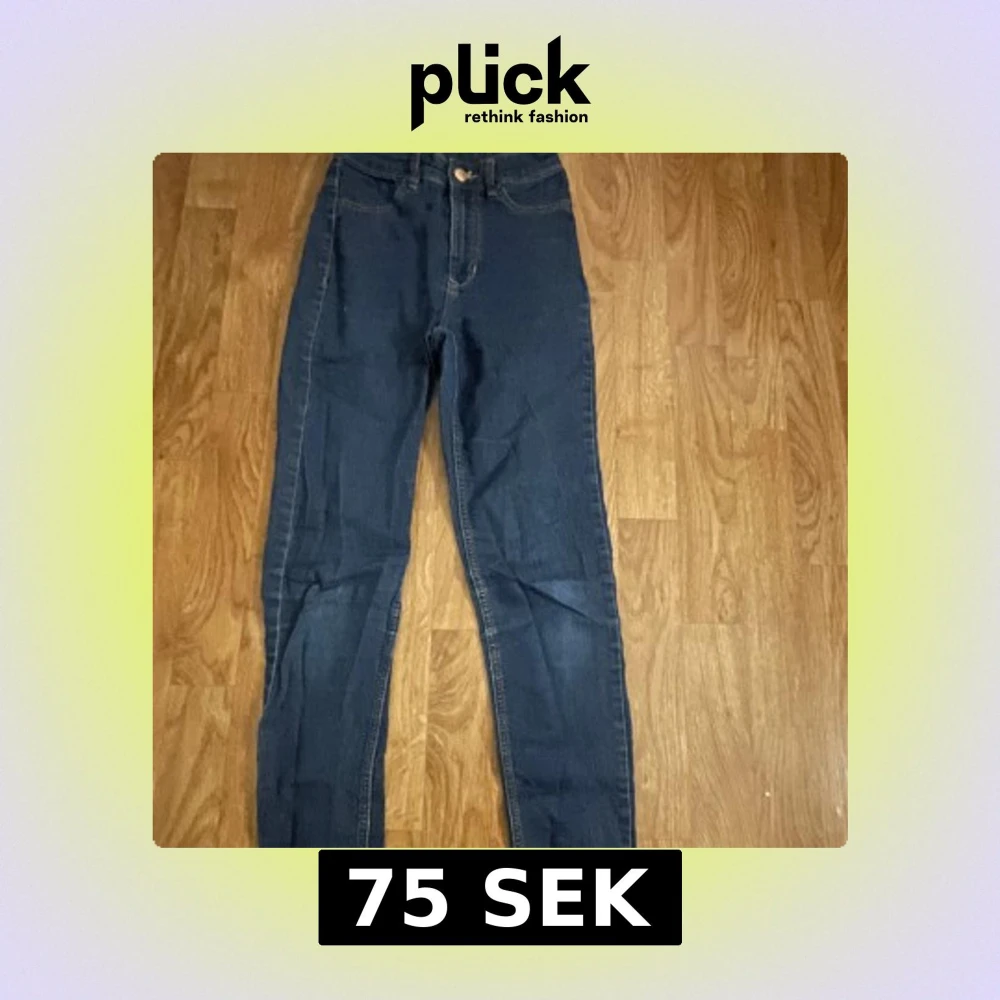 Snygga mörkblå jeansbyxor med hög midja och klassisk femficksdesign. Byxorna har en knapp och dragkedja framtill. Perfekta för en stilren look.