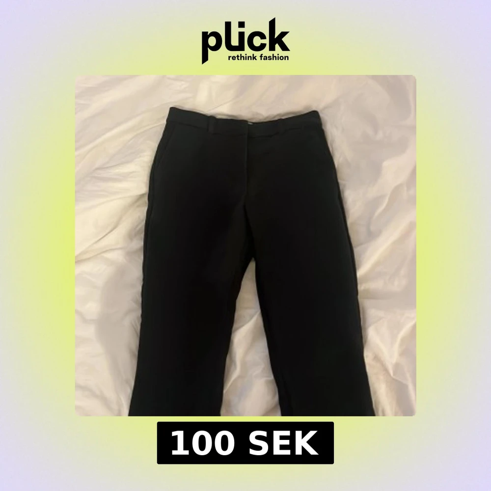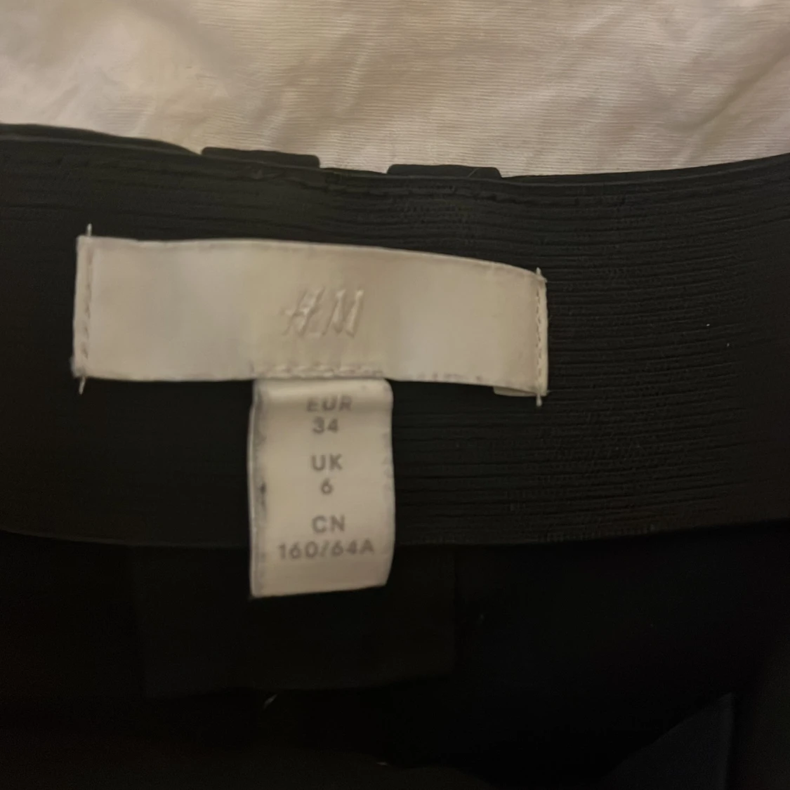 Klassiska svarta kostymbyxor från H&M i storlek 34. Byxorna har raka ben, ganska låga i midjan. Byxorna är små i storlek.