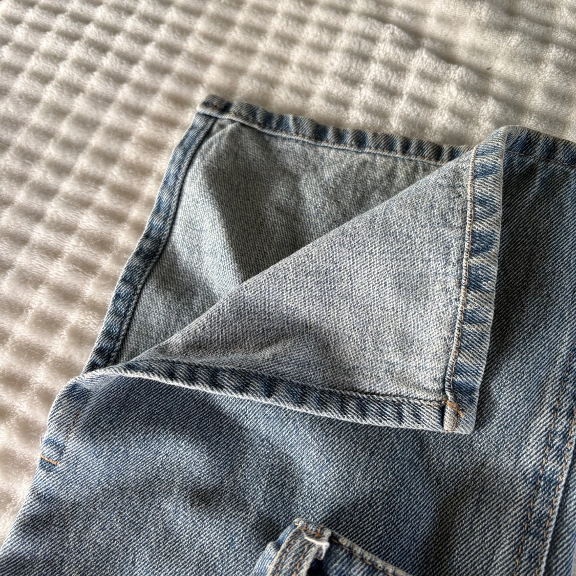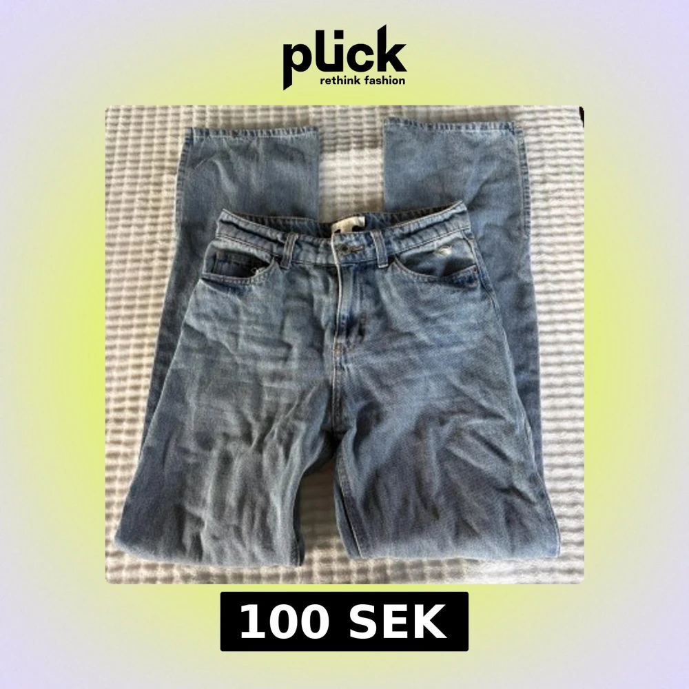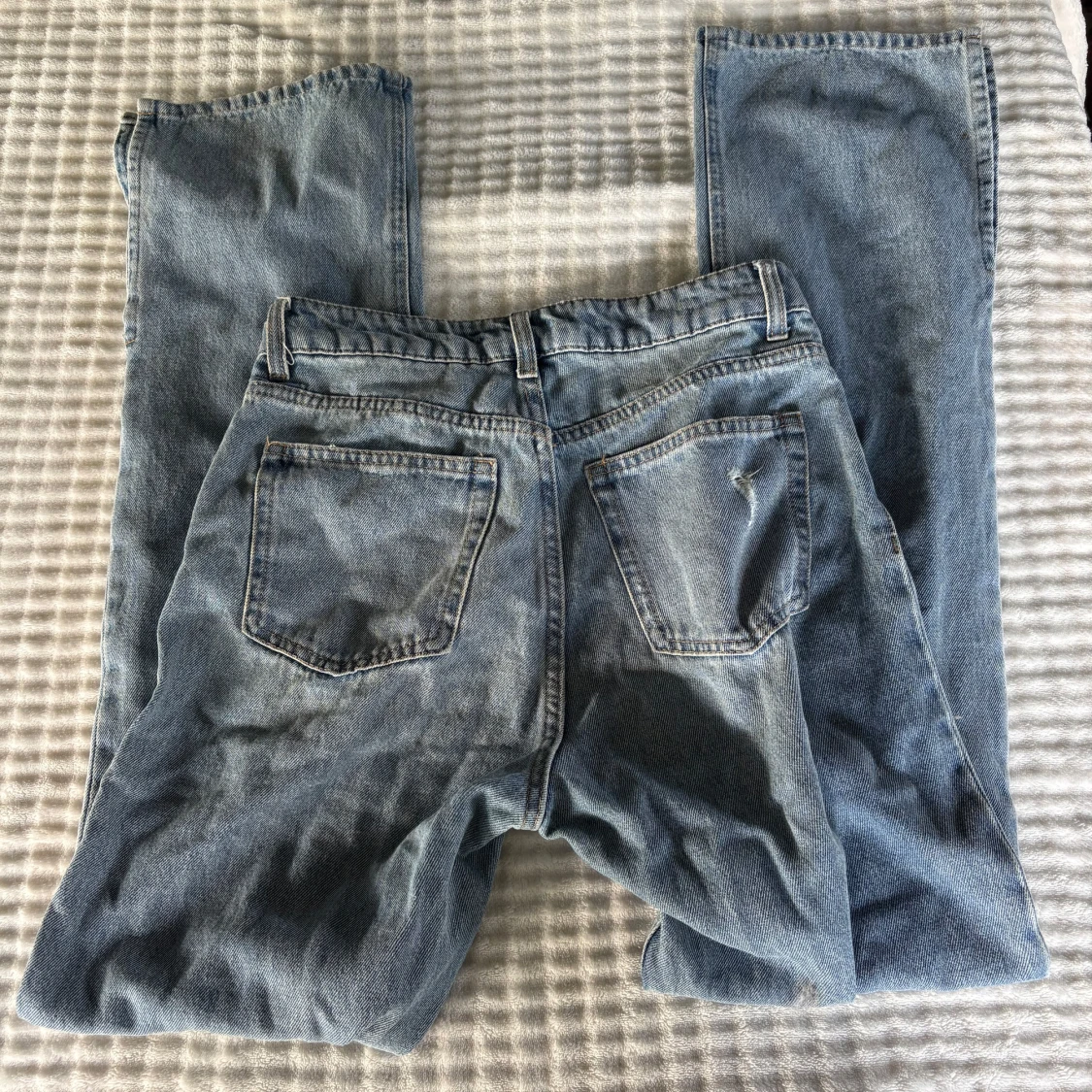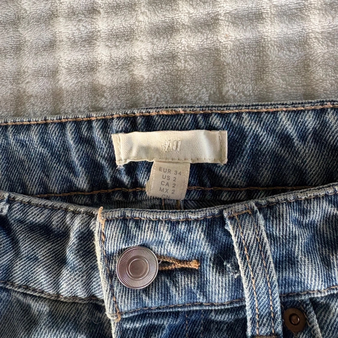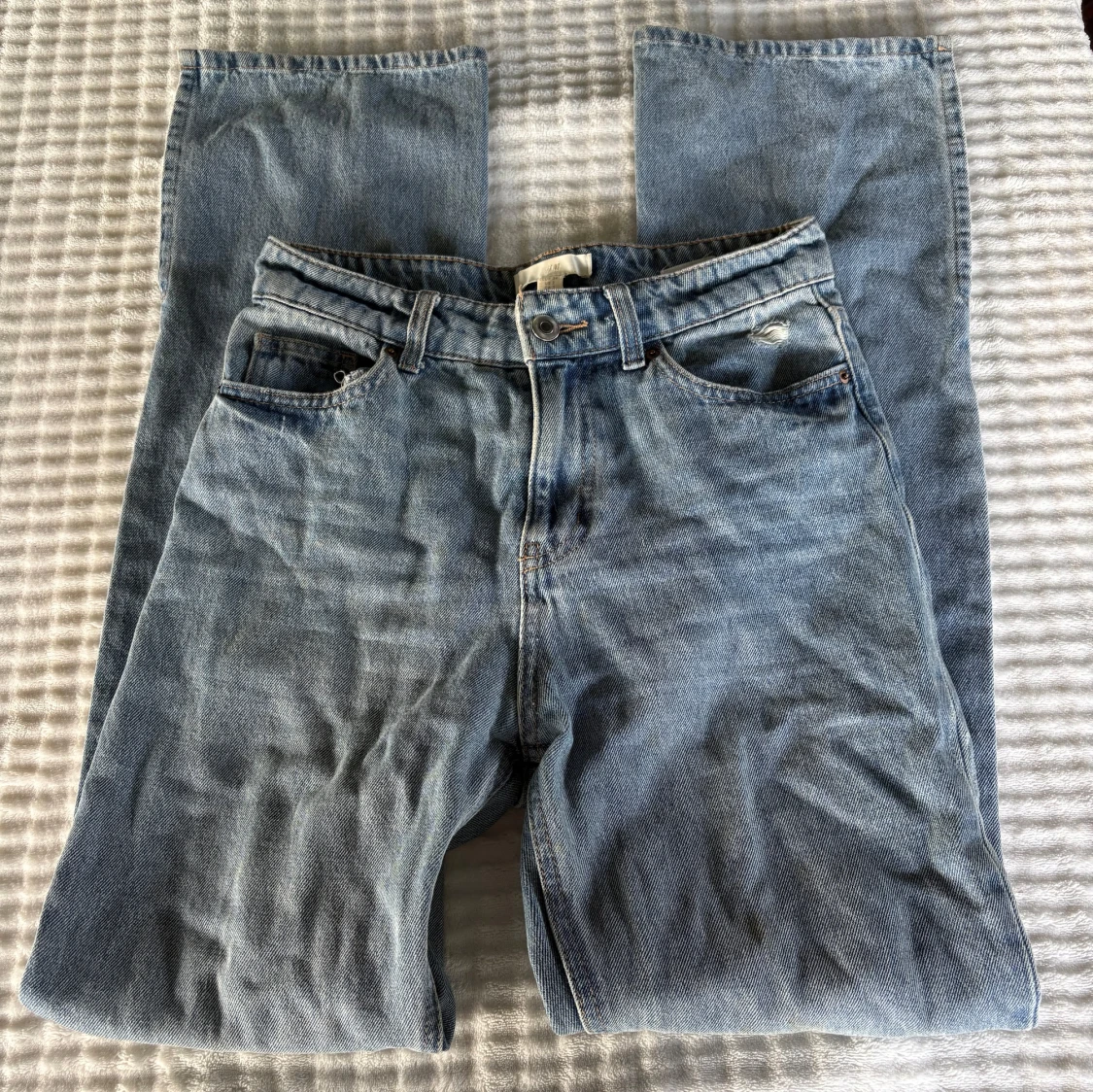 Ljusblå jeans från H&M i klassisk rak modell med fem fickor och hög midja. Jeansen är tillverkade i bomullsdenim och har en enkel, tidlös look med knapp och dragkedja framtill. Perfekta för en avslappnad och stilren vibe. FINNS EN LITEN MINI FLÄCK PÅ BENET VID SLITSEN SOM VISAS PÅ SISTA BILDEN!‼️