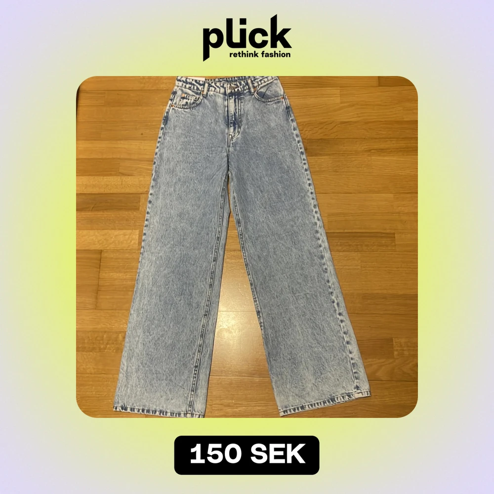 Säljer ett par ljusblå jeansbyxor från &Denim i storlek 34. De har en ultra hög midja och en wide fit. Priset kan diskuteras ! 🦋