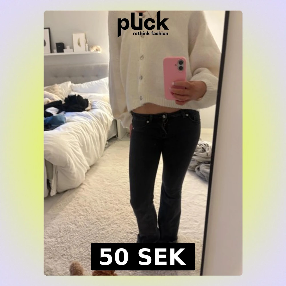 Low bootcut jeans ifrån HM! Säljer då ser sitter för tight på mig. Använda mycket men inga defekter nere vid fötterna eller sån