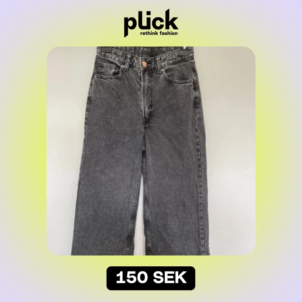 Dessa svarta flare wide jeansen är perfekta för dig som gillar lite lösare byxor. Byxorna kommer ifrån H&M och är i storlek 34. Sitter perfekt i längden på mig som är 168 cm lång, men säljer pågrund av att midjan inte passar!