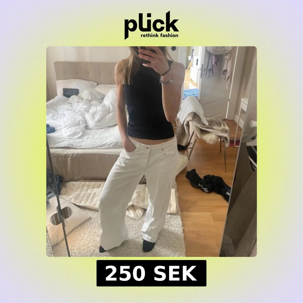Snygga vita jeansbyxor med en loose passform och låg midja. Perfekta för en avslappnad stil. Kombinera med en enkel topp för en stilren look. Använda ett fåtal gånger. Säljer då de inte passar mig längre. I modellen baggy wide.