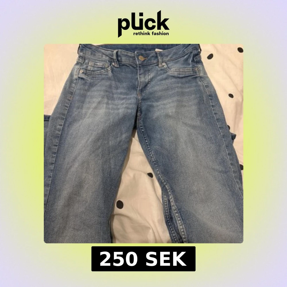 Snygga blå jeansbyxor med klassisk femficksdesign. De har en knapp och dragkedja framtill. Perfekta för en avslappnad stil.
