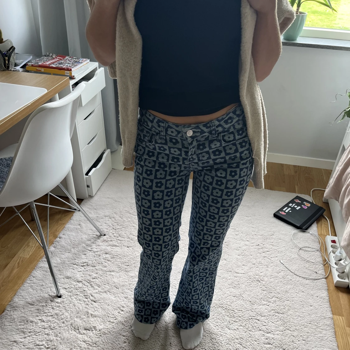 Lågmidjade jeans med blommönster 💗 använt typ 3 ggr, skriv prisförslag till mig🫶