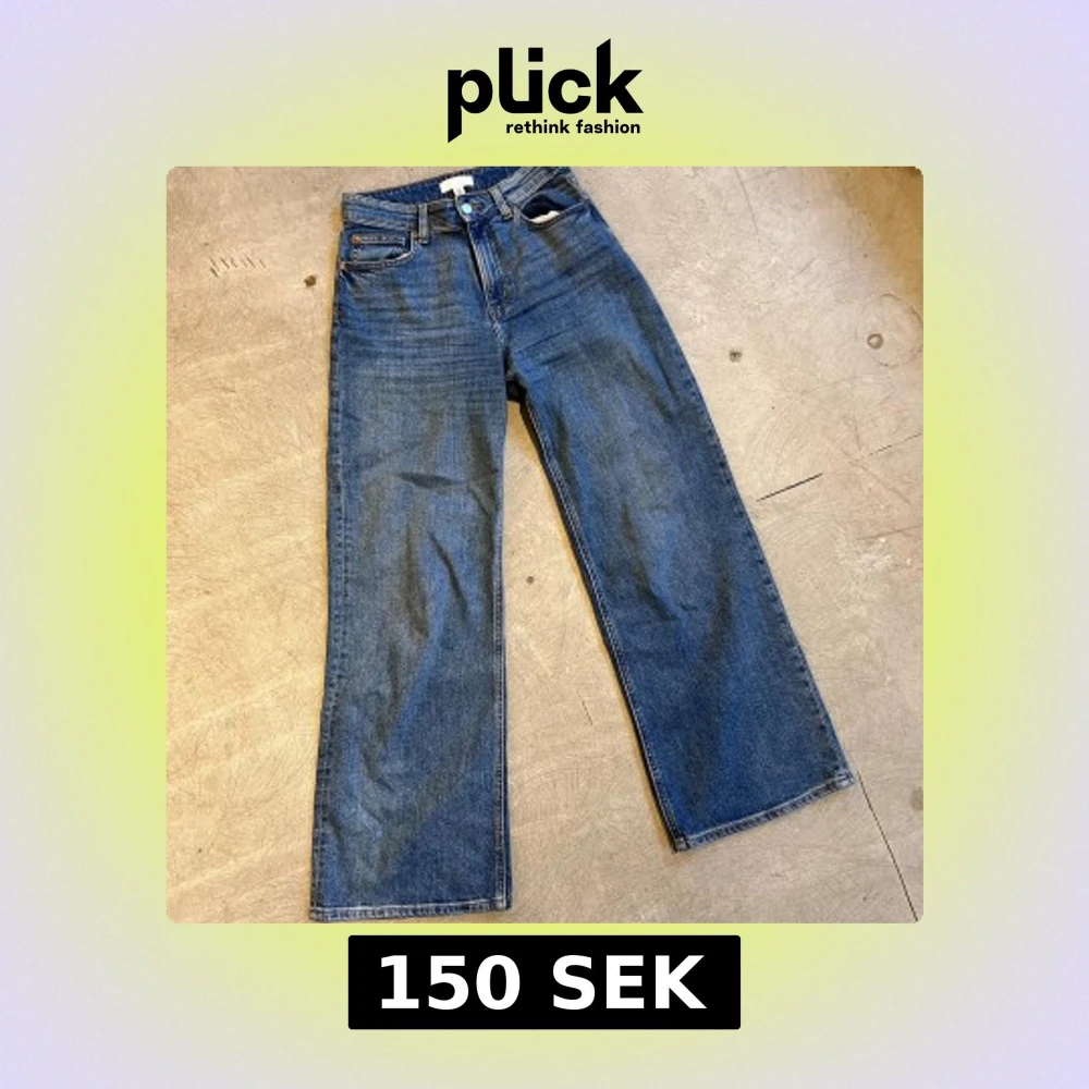 Snygga blå jeans från H&M i storlek 36. Modellen har hög midja och raka, vida ben för en trendig och avslappnad look.
