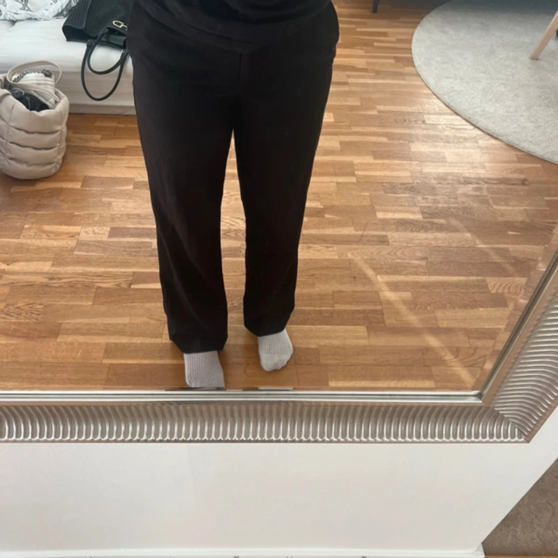 Snygga svarta kostymbyxor från H&M i en klassisk design. Byxorna har en rak passform med hällor för bälte och diskreta fickor. Perfekta för en stilren look.
