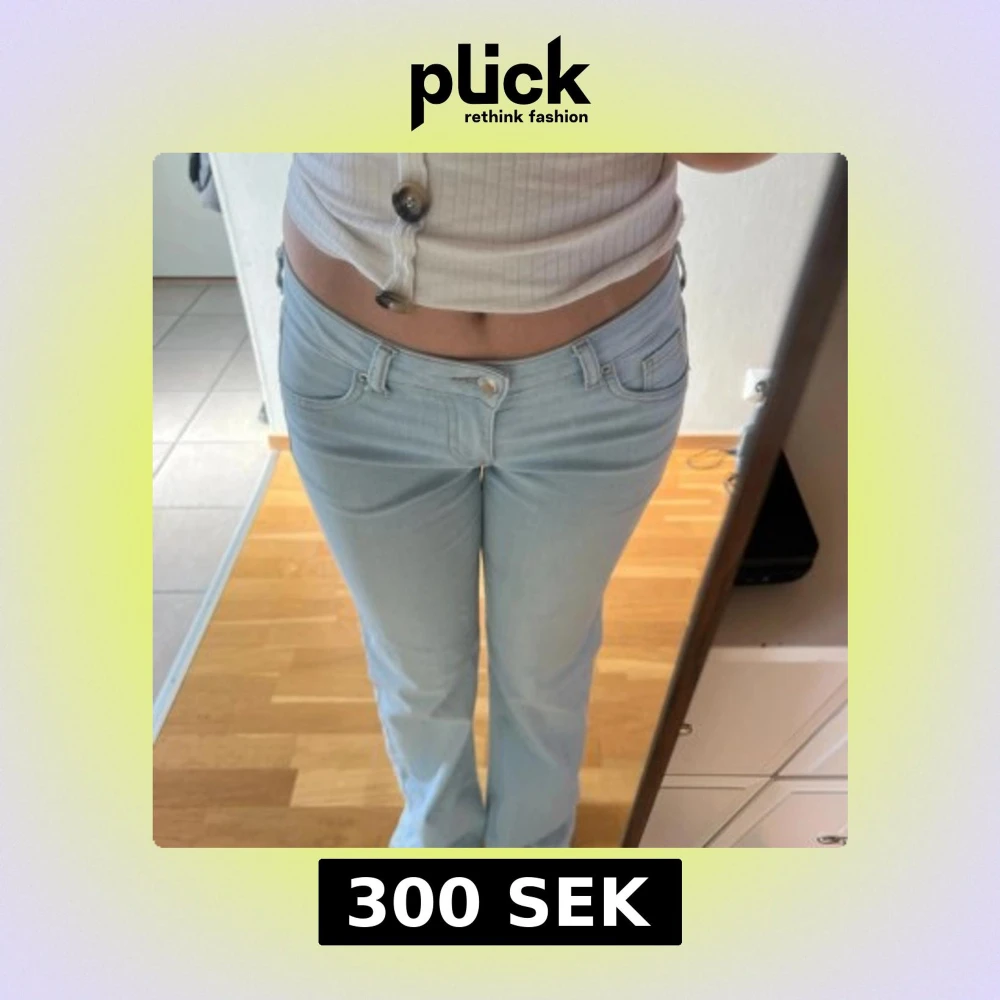 Ljusblå jeans som är lågmidjade💗midjemåttet: 37cm , innerbenslängd: 77cm!!