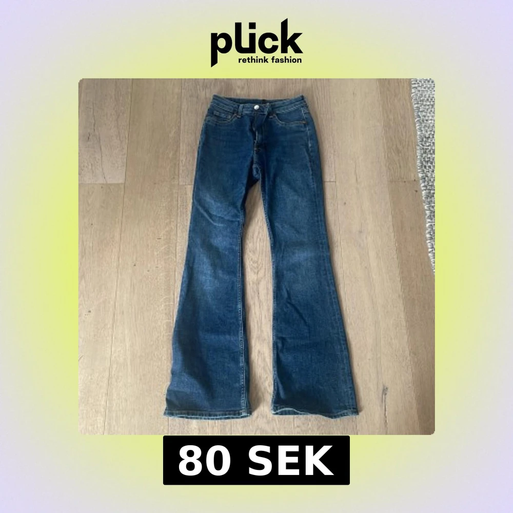Snygga blå bootcut jeans med klassisk femficksdesign. Perfekta för en avslappnad stil med en touch av retro. De har en knapp och dragkedja framtill.