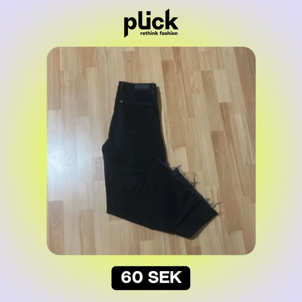 Säljer dessa jätte fina svarta jeans då dom har blivit för korta för mig ”172” är jag, det står strl 40 men skulle nog säga 38.