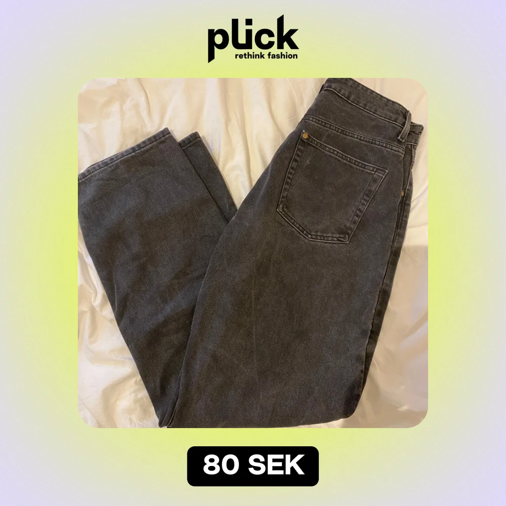 Säljer ett par grå 90's Baggy jeans från H&M:s The Recycled Denim Collection. De har en avslappnad passform med hög midja och klassisk femficksdesign. Perfekta för en casual look med en vintage touch. 🖤