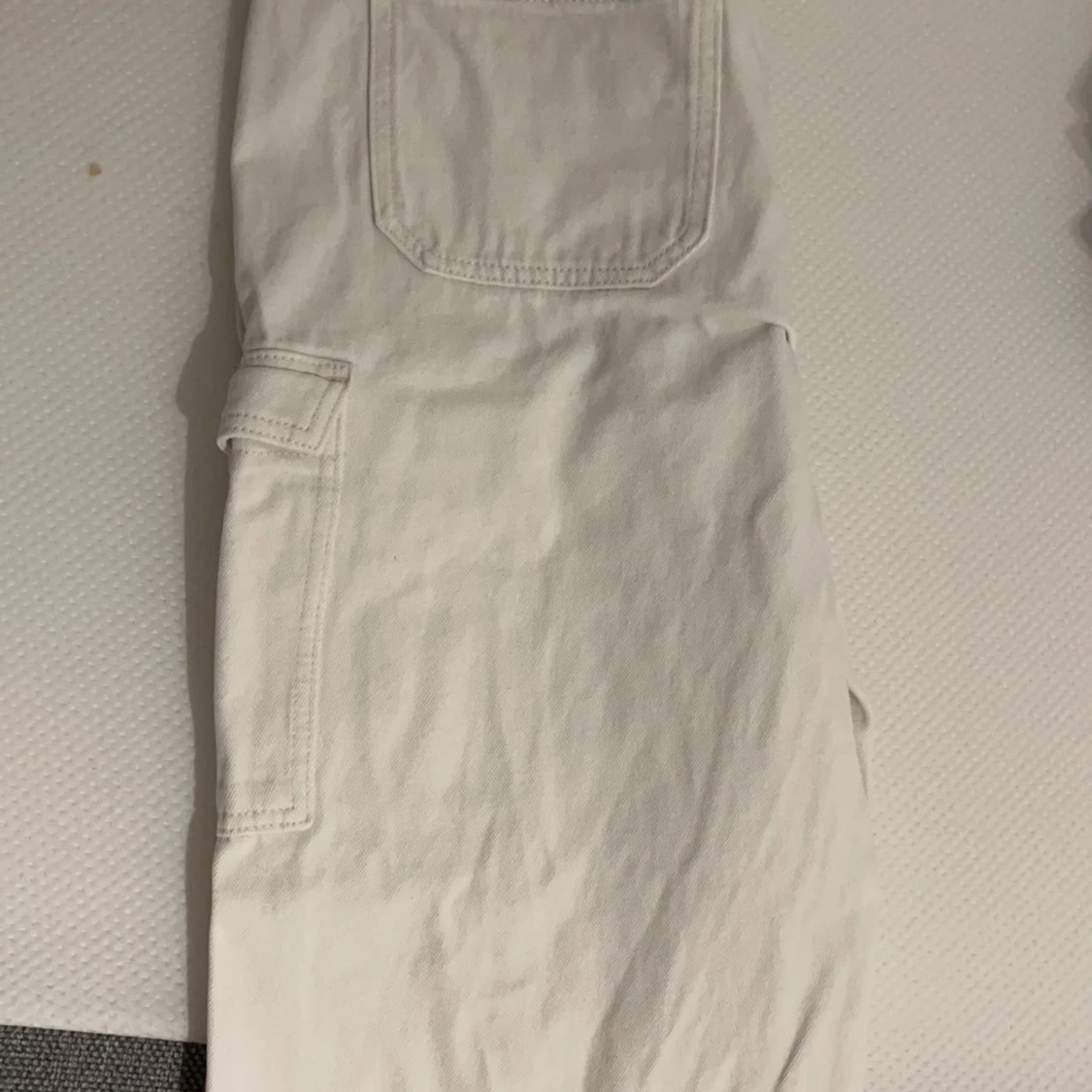 Vita jeans som är i väldigt bra skick knappt använt då jag alltid smutsar ner mig men finns inga stående fläckar. Är tajt vid midjan och visar former perfekt.