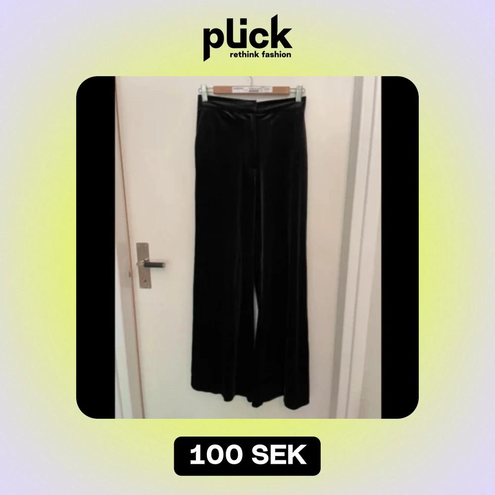 Snygga svarta byxor i sammetstyg! Dragkedja och knappar fram samt fickor.