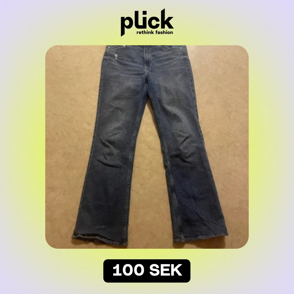 Säljer mörkblåa jeans ifrån hm. Mörkblåa bootcut med high waist. Storlek 38, Sparsamt använda.
