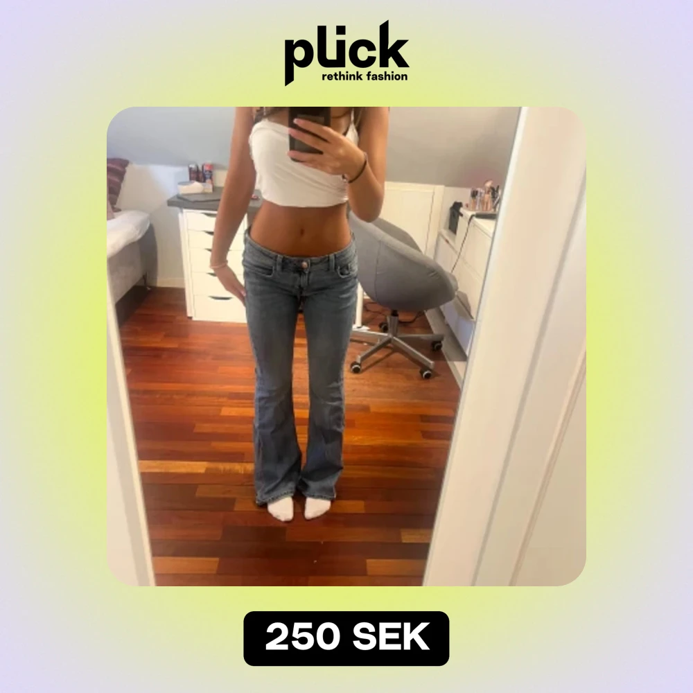 lågmidjade jeans från HM. Lite sönder trampade längst ner.