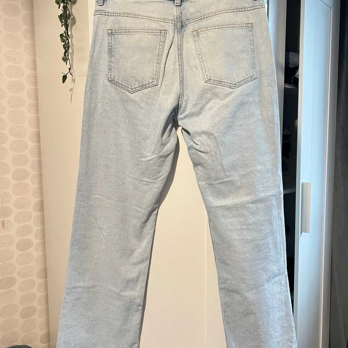 Snygga ljusblå jeans från H&M med fyra fickor och 1 liten. Dessa är straight jeans använt de fåtal gånger