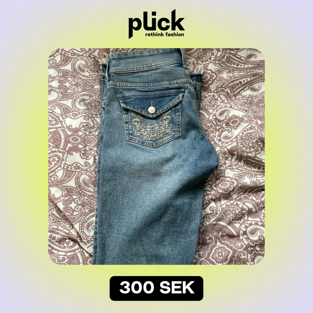 Säljer ett par snygga blå jeans med broderad detalj på bakfickan. Jeansen har jag sprätt upp nertill så dom ska bli längre💕skriv om ni har någon fråga eller så💕
