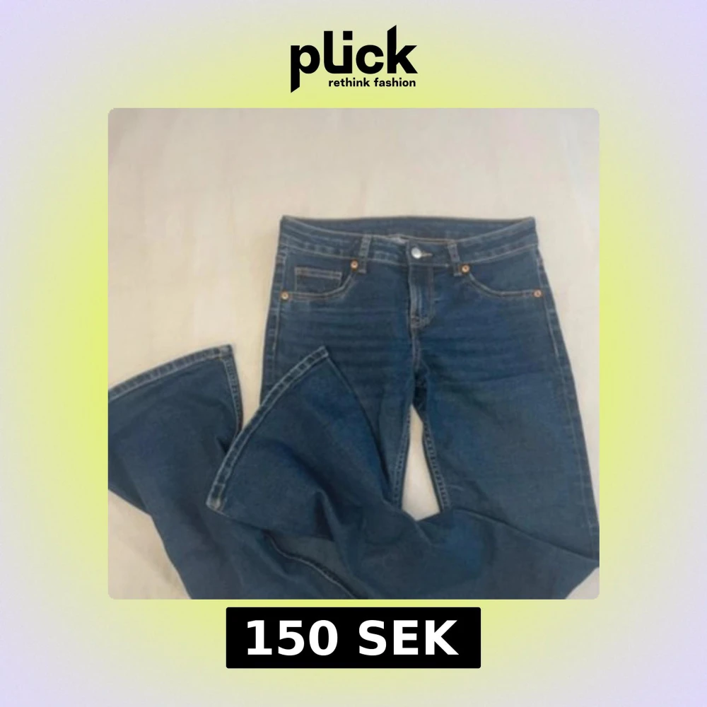 Ett par snygga och populära jeans från hm i modell Low flared. Mått rakt över midjan är 39.