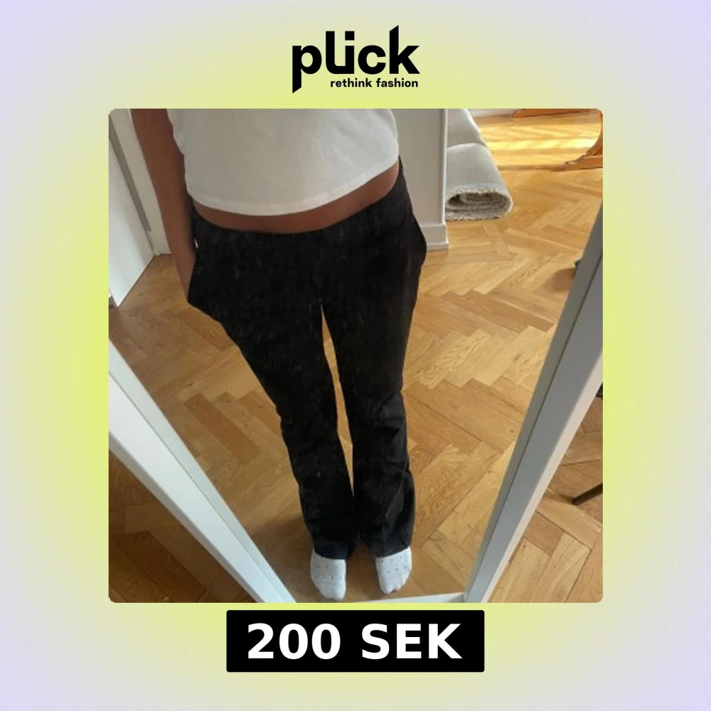 Säljer ett par svarta kostymbyxor med bootcut-modell och låg midja. Jag är ca 170 cm!