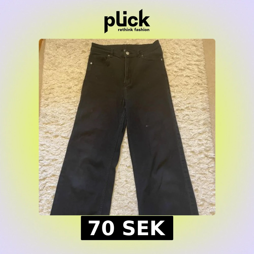 Svarta jeans från H&M i modellen wide med raka, breda ben och klassisk femficksdesign. Byxorna har hög midja och är tillverkade i ett mjukt jeans med lite stretch. Perfekta för dig som gillar en avslappnad och trendig look. Säljer dessa eftersom de är för stora. Välanvända men i mycket gott skick.