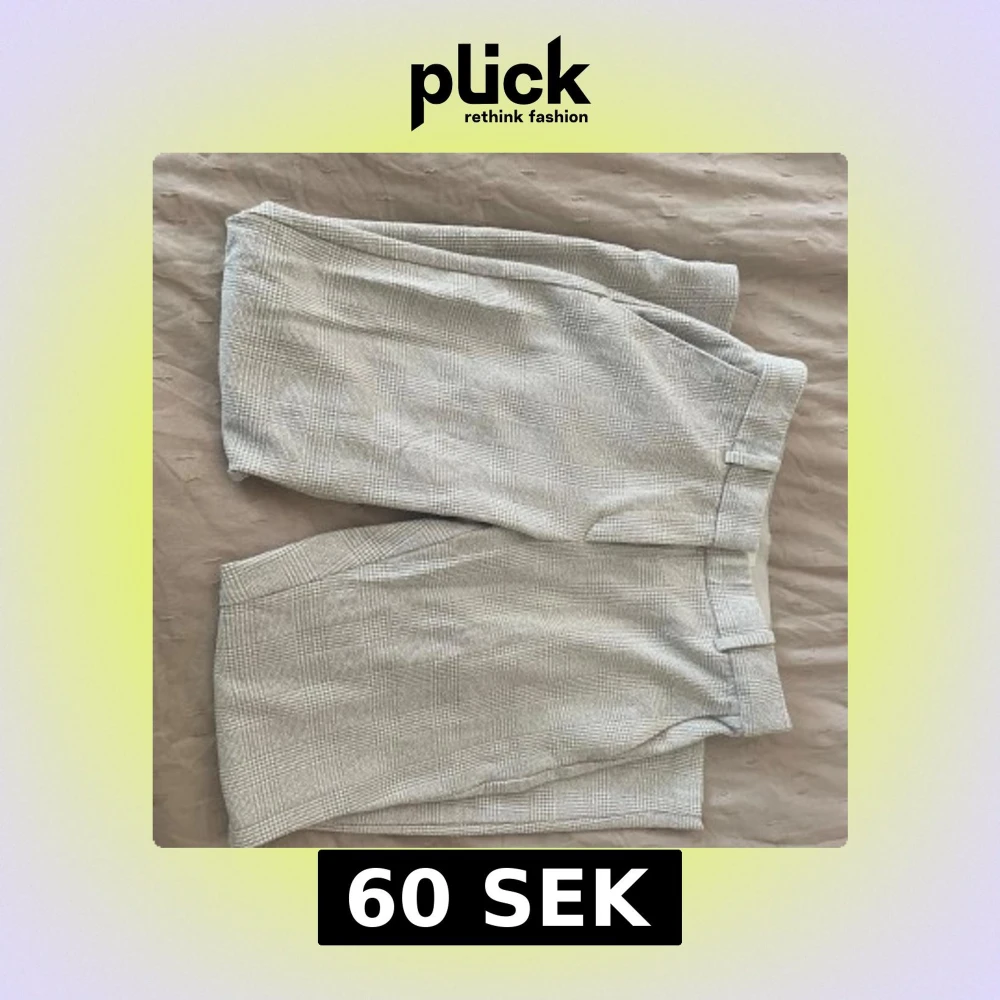 Snygga grå kostymbyxor med ett diskret rutmönster från H&M. Byxorna har en klassisk passform med hällor för bälte och stängs med dragkedja och hyska. Perfekta för en stilren look.