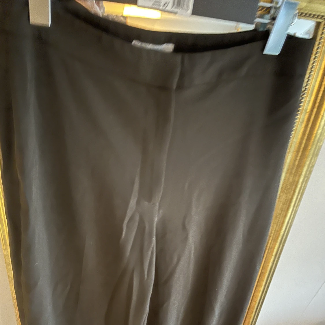 Khakigröna kostymbyxor. Ganska vida i benen. I gott skick.