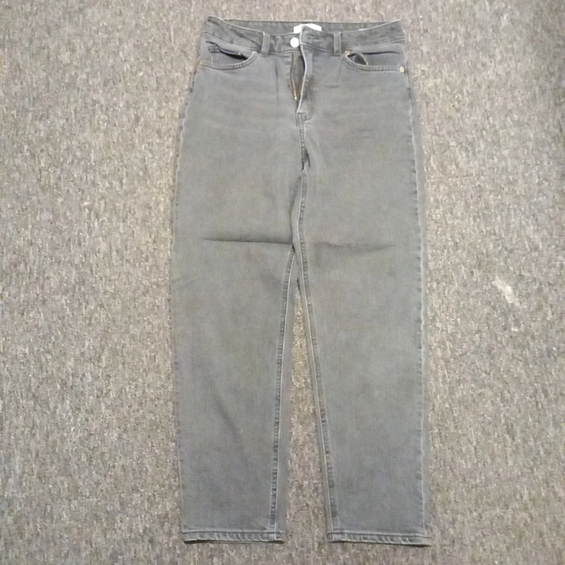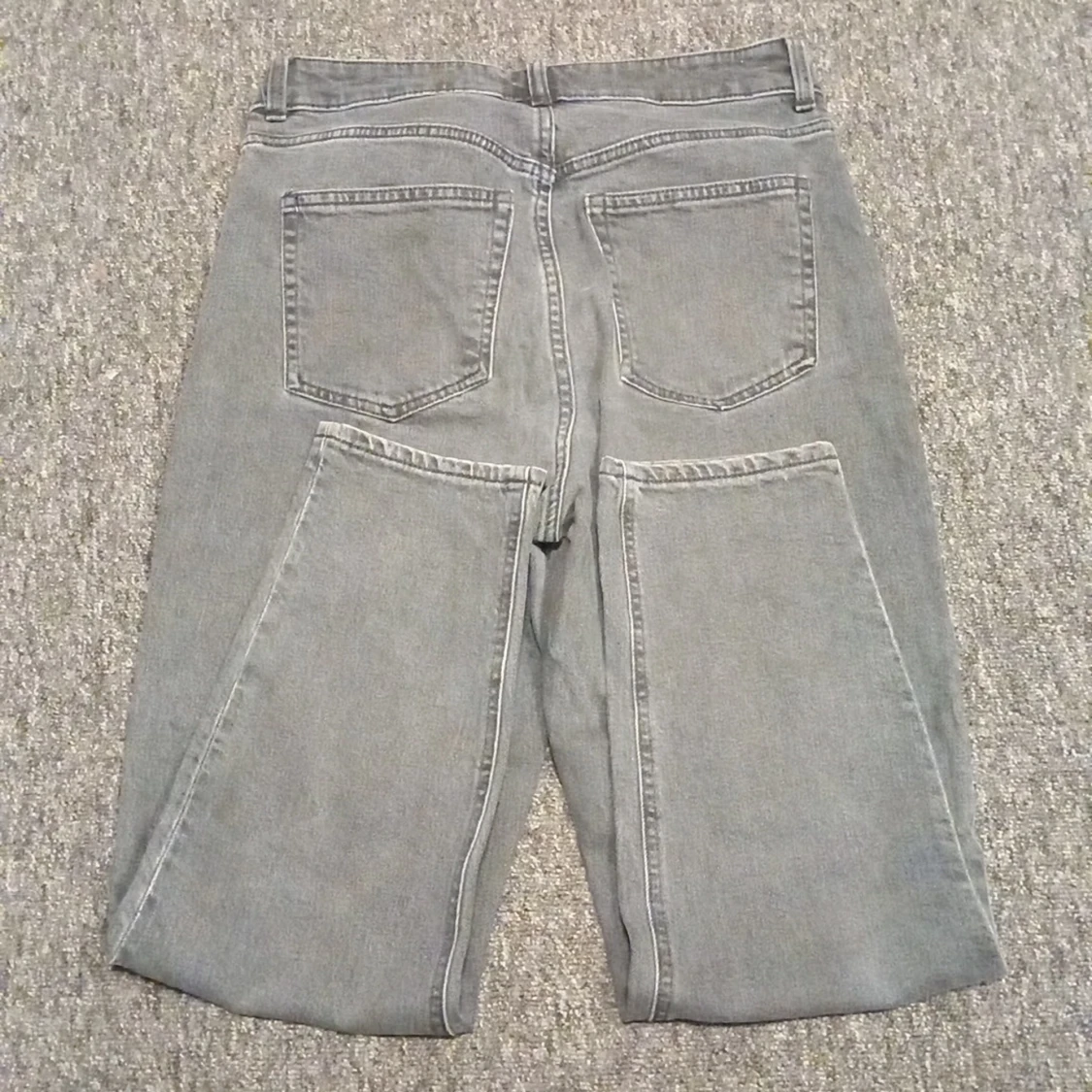 Säljer ett par gråa högmidjade jeans från H&M i storlek 38. Jeansen har raka ben, klassiska femficksdetaljer och är tillverkade i denim. Perfekta för en chill och stilren look.