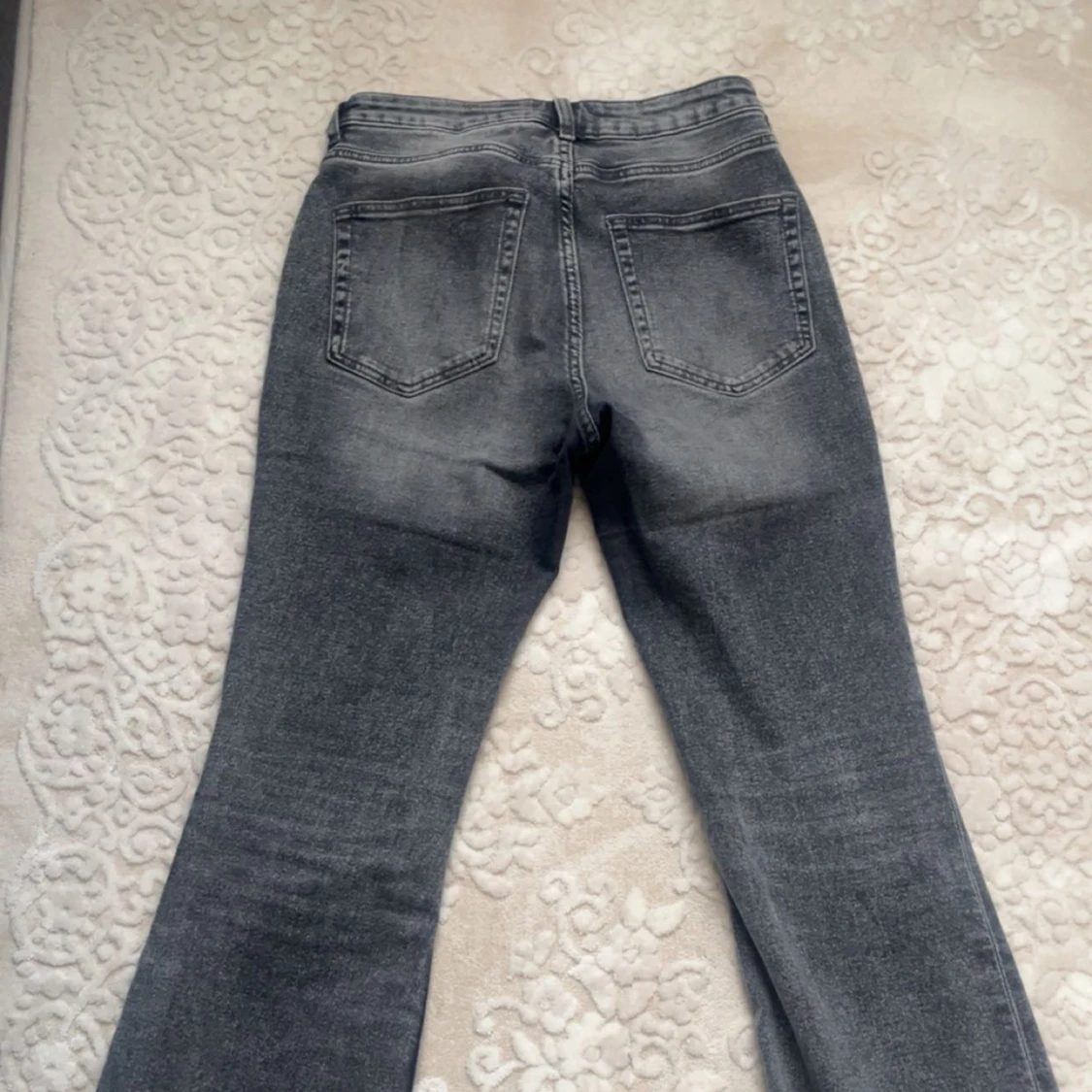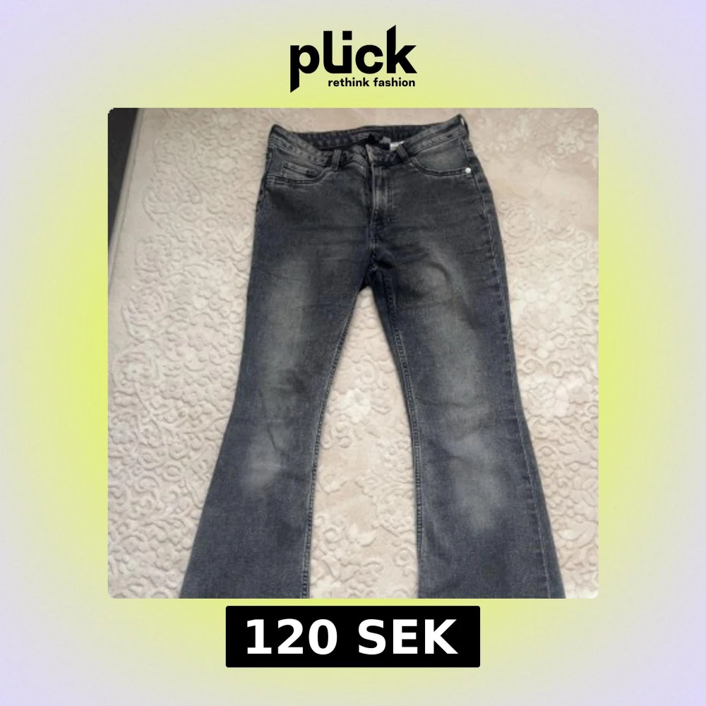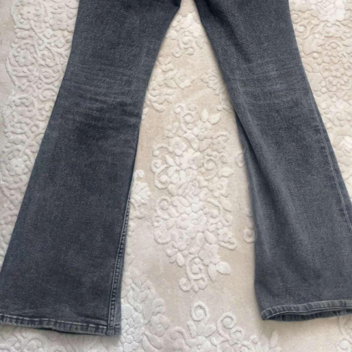 Snygga grå jeans med bootcut-modell. Klassisk femficksdesign och normal passform. Perfekta till sneakers eller boots för en avslappnad look. Jeansen är högmidja.