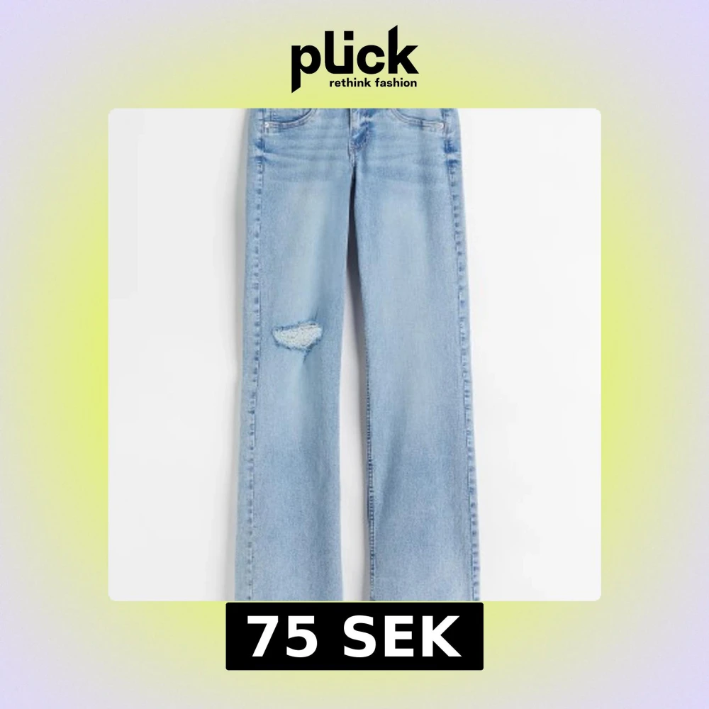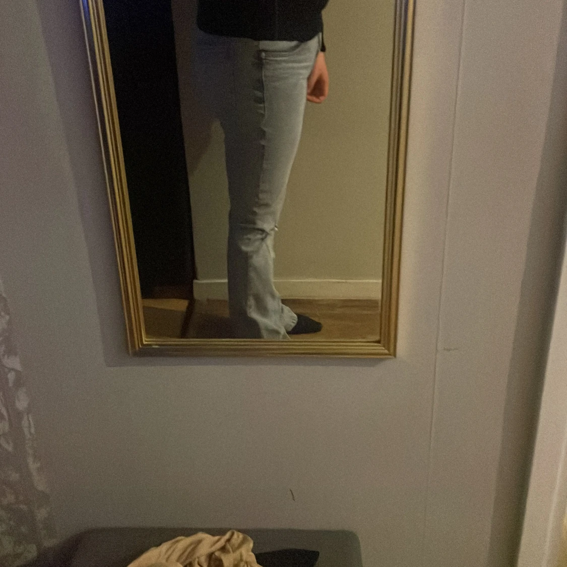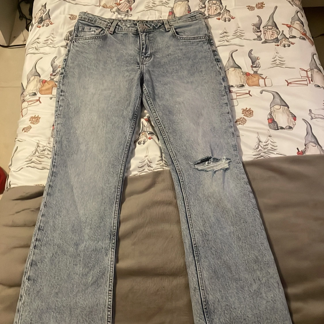 Snygga ljusblå jeans med en cool slitning på ena benet. De har en klassisk femficksdesign och en rak passform som ger en avslappnad look. Perfekta för en casual stil.