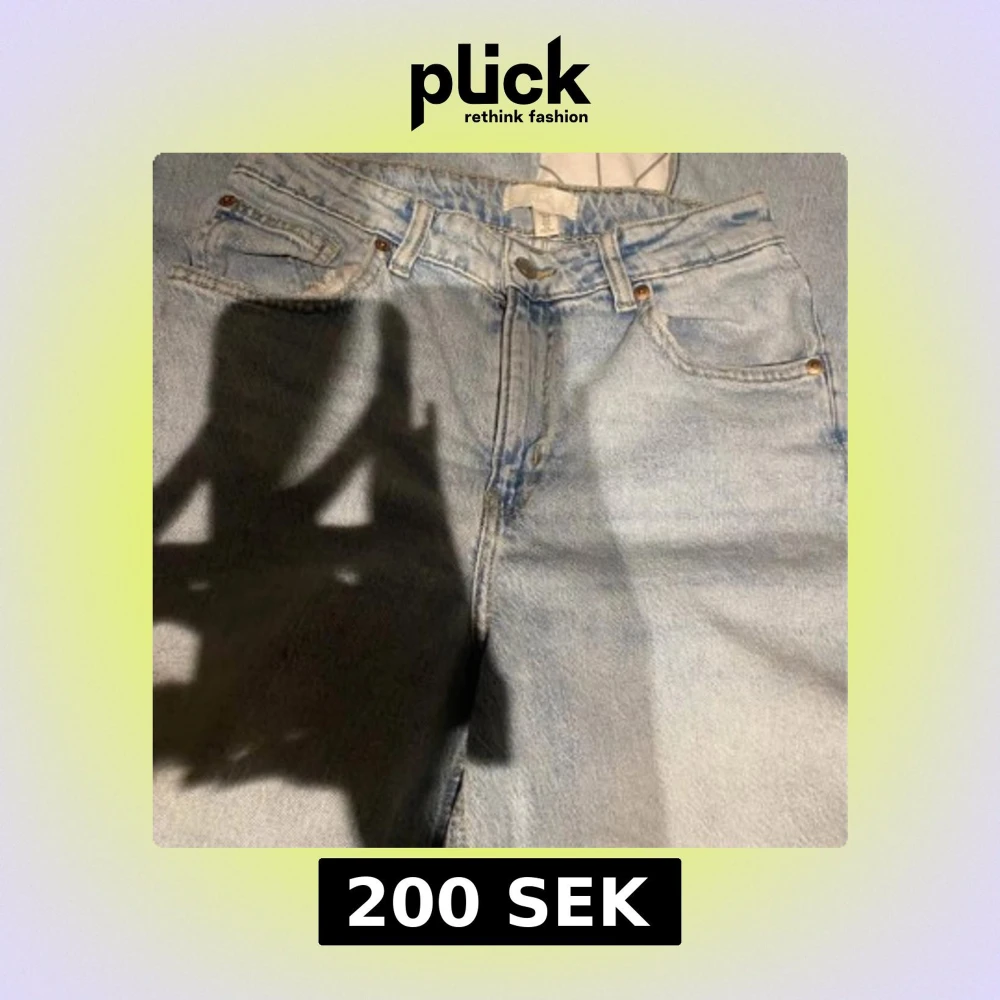 Säljer ett par ljusblå jeans från H&M i storlek 40. Klassisk femficksmodell med dragkedja och knapp framtill. Jeansen har raka ben och är tillverkade i bomullsdenim. Perfekta för en avslappnad och trendig look.