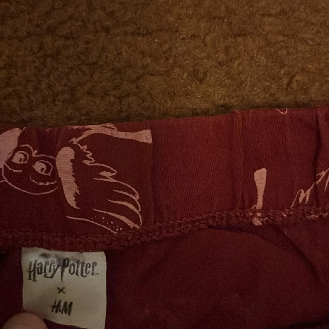 Snygga vinröda leggings från Harry Potter x H&M med ljusrosa ugglemönster. Byxorna har elastisk midja och är gjorda i mjukt material som passar perfekt för chill dagar. Perfekt för dig som älskar magi och vill ha något bekvämt och unikt.