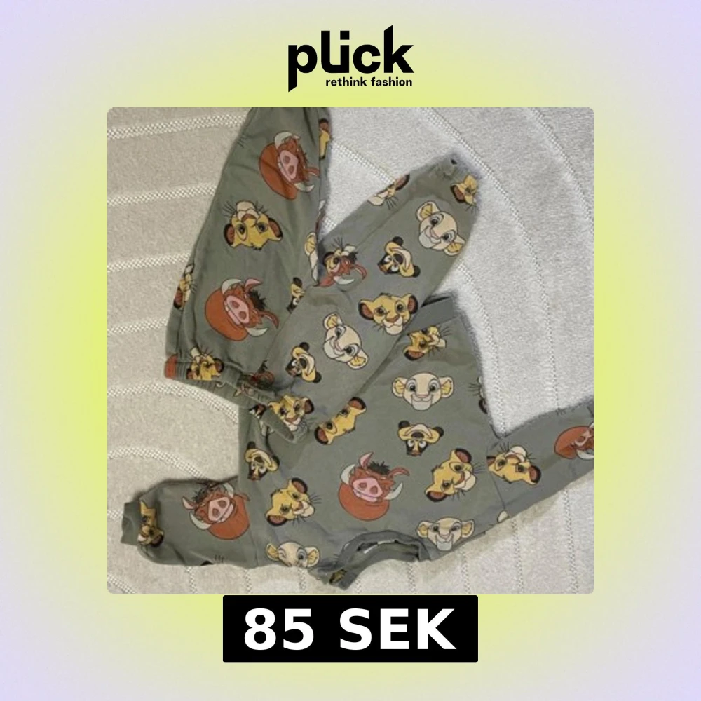 Gråa mjukisbyxor med elastisk midja och färgglada tryck av Simba, Timon och Pumbaa från Lejonkungen. Byxorna har avslappnad passform och är perfekta för chill dagar hemma. Materialet känns mjukt och skönt mot huden.