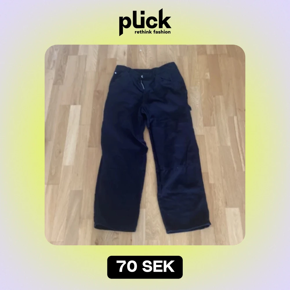 Svarta byxor från H&M med justerbar midja. Byxorna har en baggy passform och är utrustade med både fram- och bakfickor.