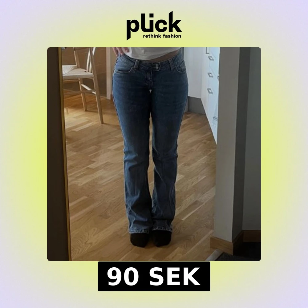 Säljer ett par blå jeans med bootcut. Är lite långa på mig som är 170 cm lång. Vanliga fickor bak. Något Ljusare än på bilden