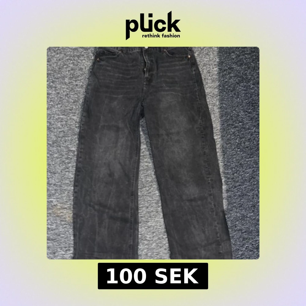 Snygga svarta jeansbyxor från H&M med en klassisk design. Byxorna har en rak passform och är perfekta för en avslappnad stil. De har fickor både fram och bak samt en knapp och dragkedja i gylfen.
