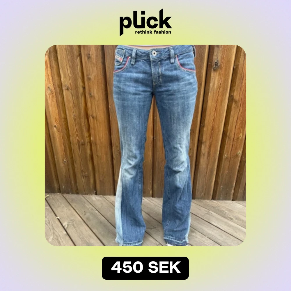 Långa snygga omsydda jeans från Disel, men snygga detaljer (liten i storleken) Pris kan diskuteras vid snabb affär Midja rätt över: 38 cm Innerben: 85 cm Uterben: 103 cm