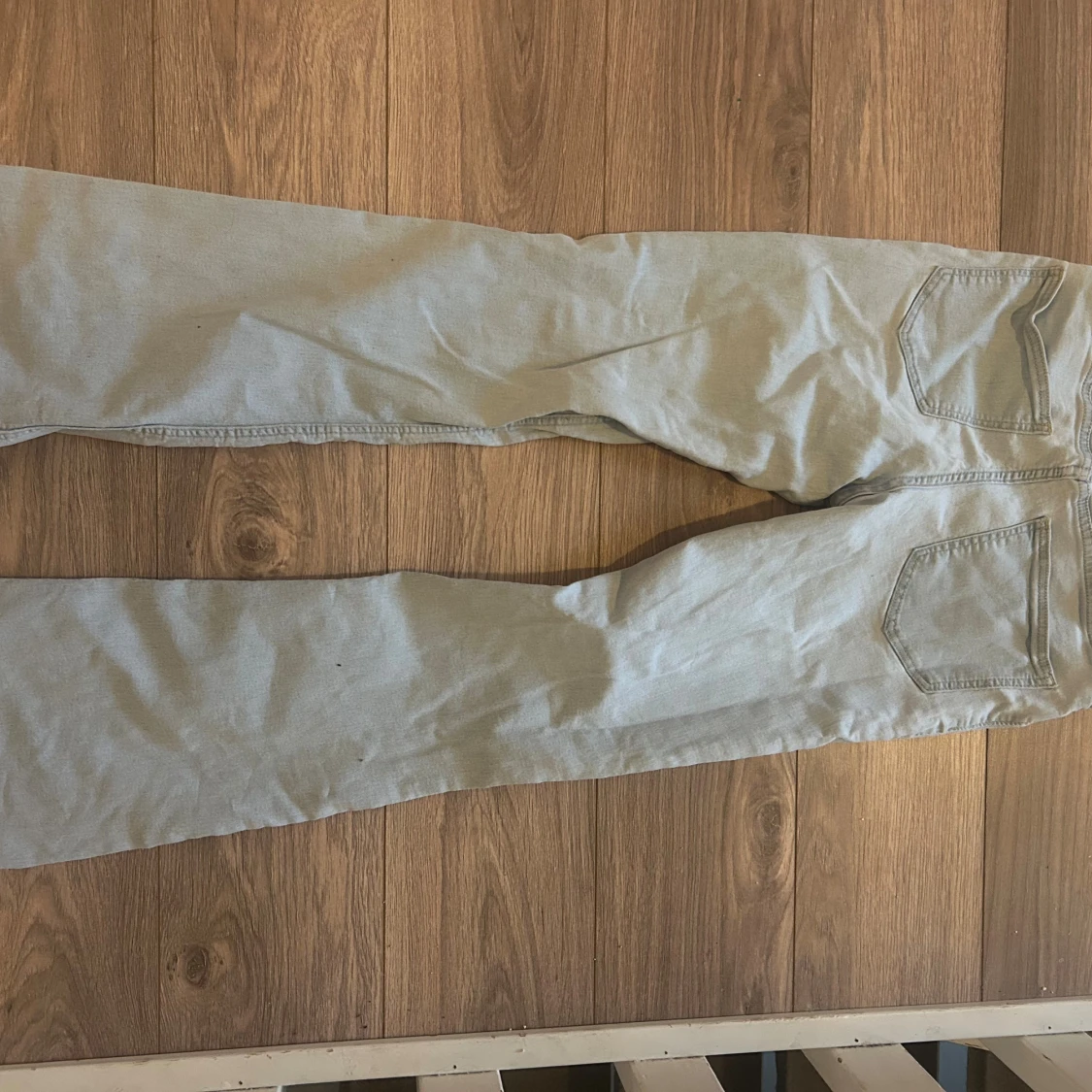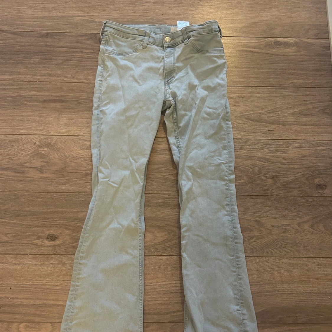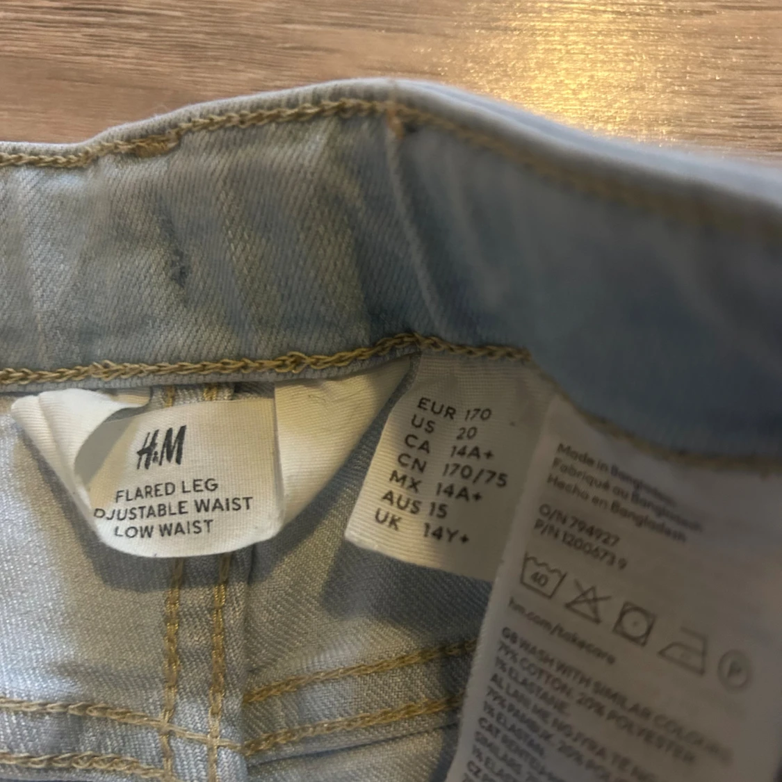 Snygga ljusblå jeans från H&M med låg midja. Modellen har flared ben och klassiska fickor både fram och bak.