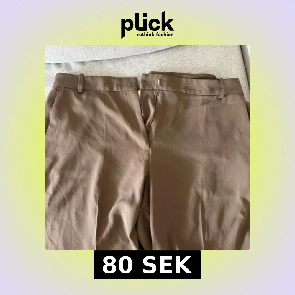Snygga beige/bruna kostymbyxor från H&M i storlek 46. Byxorna har en klassisk rak passform med midwaist och är tillverkade i ett mjukt material med lite stretch. De har hällor för bälte och dold dragkedja framtill. Perfekta för en clean och stilren look. KATT finns i hemmet