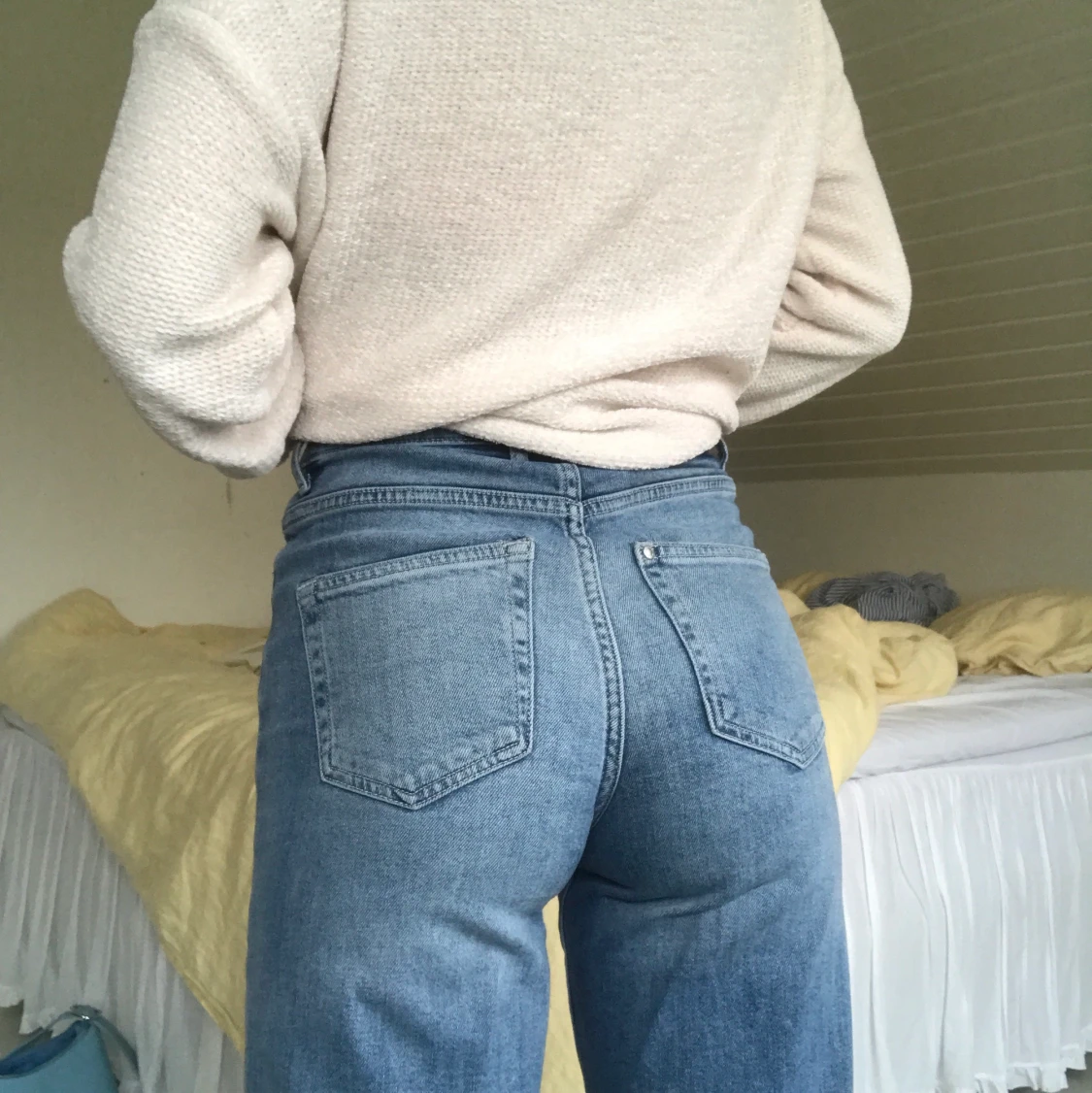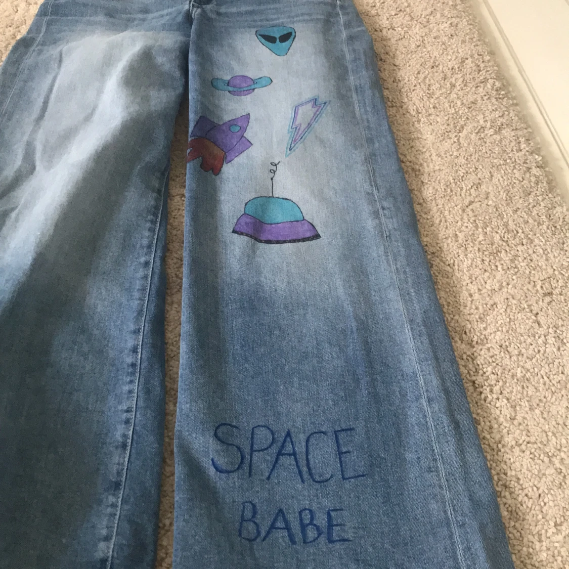 Ett par jeans från hm i storlek 34 som jag målat på med textilpennor. Sjukt coola, men använder sällan:/❤️