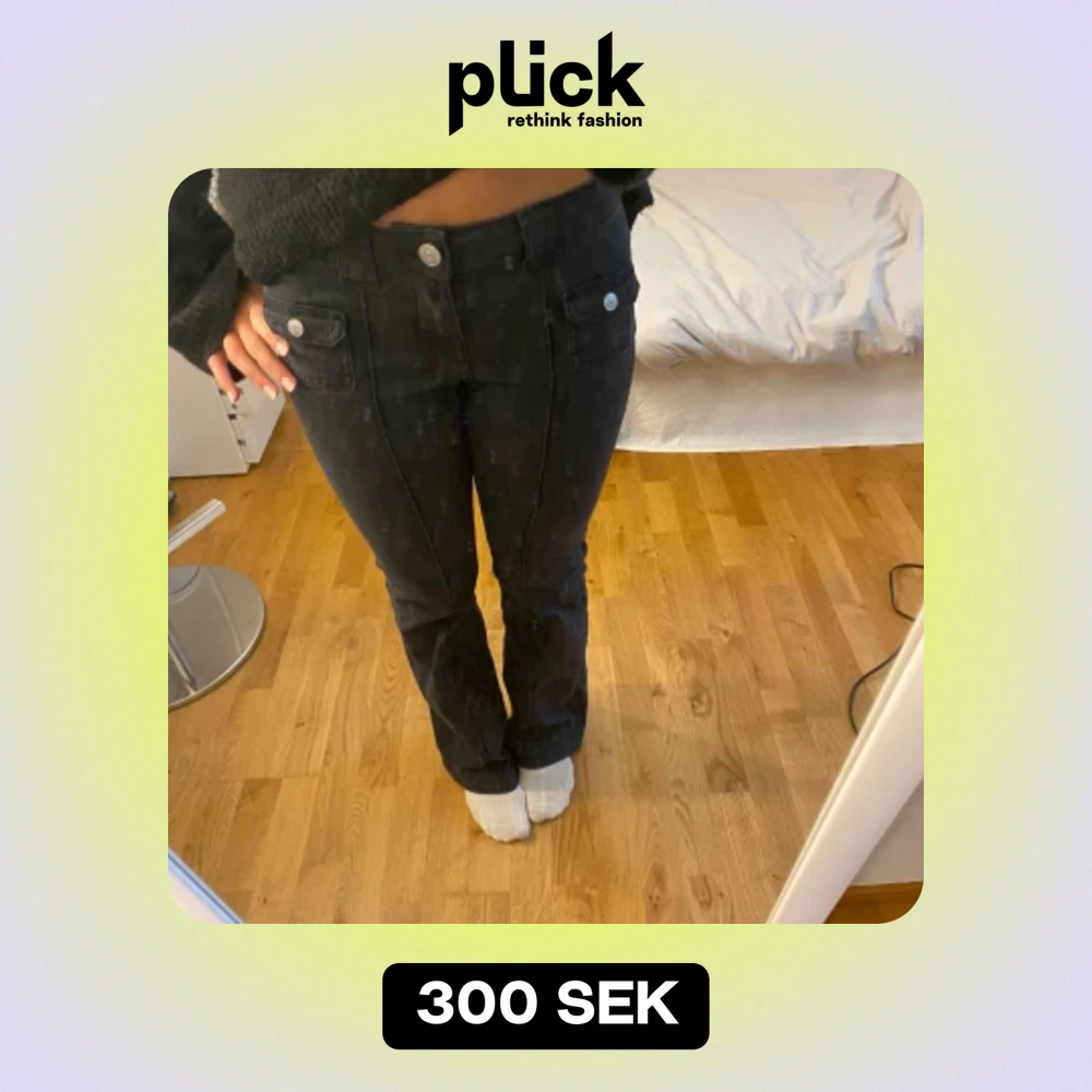 Säljer nu mina svart cargo byxor/jeans från HM som är helt slutsålda!! Dom är lågmidjadd och utsvänga vid benen 💞💞