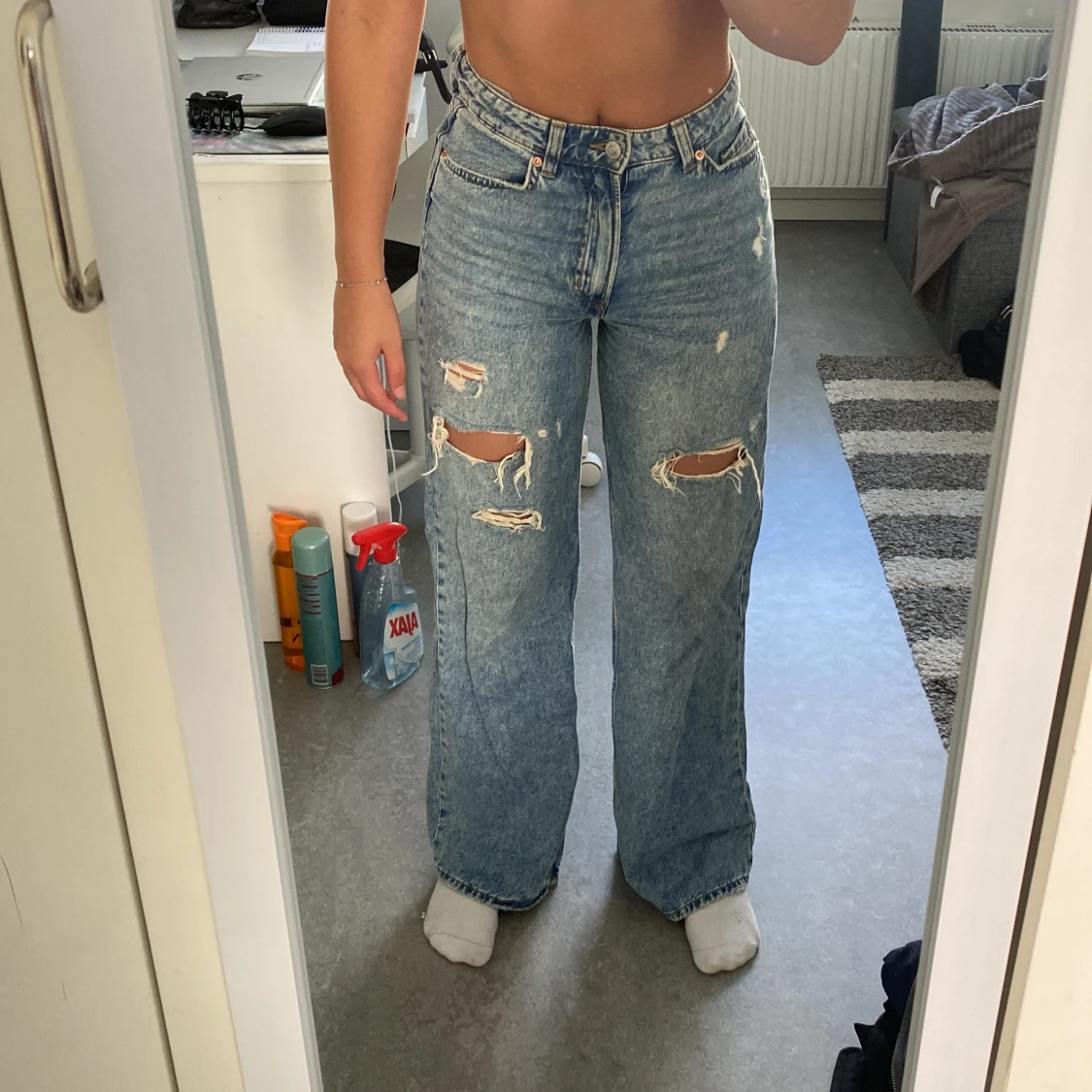 Super snygga jeans från HM med hål/slitmärken på framsidan. Sitter som en smäck och ger fin form (skriv för fler bilder)