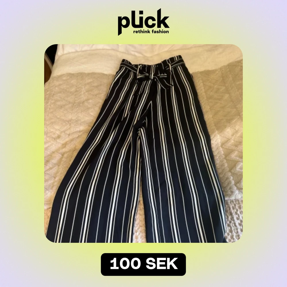 Säljer ett par jätte fina randiga kostymbyxor som inte kommer till användning då dem är för korta på mig (jag är 175cm). Passar xs-s. Använd ett fåtal gånger bara.
