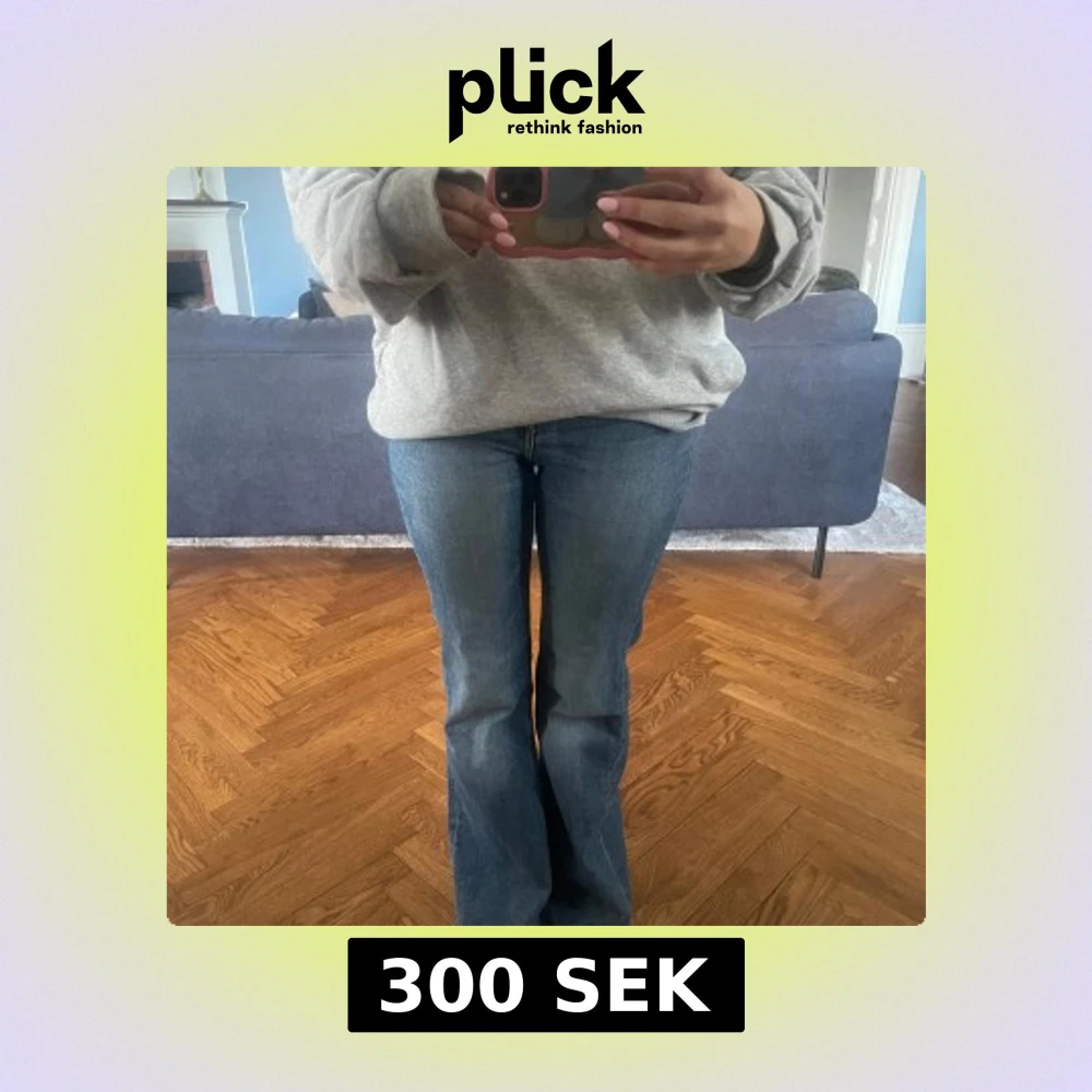 Säljer ett par lågmidjade blå bootcut jeans med normal passform.