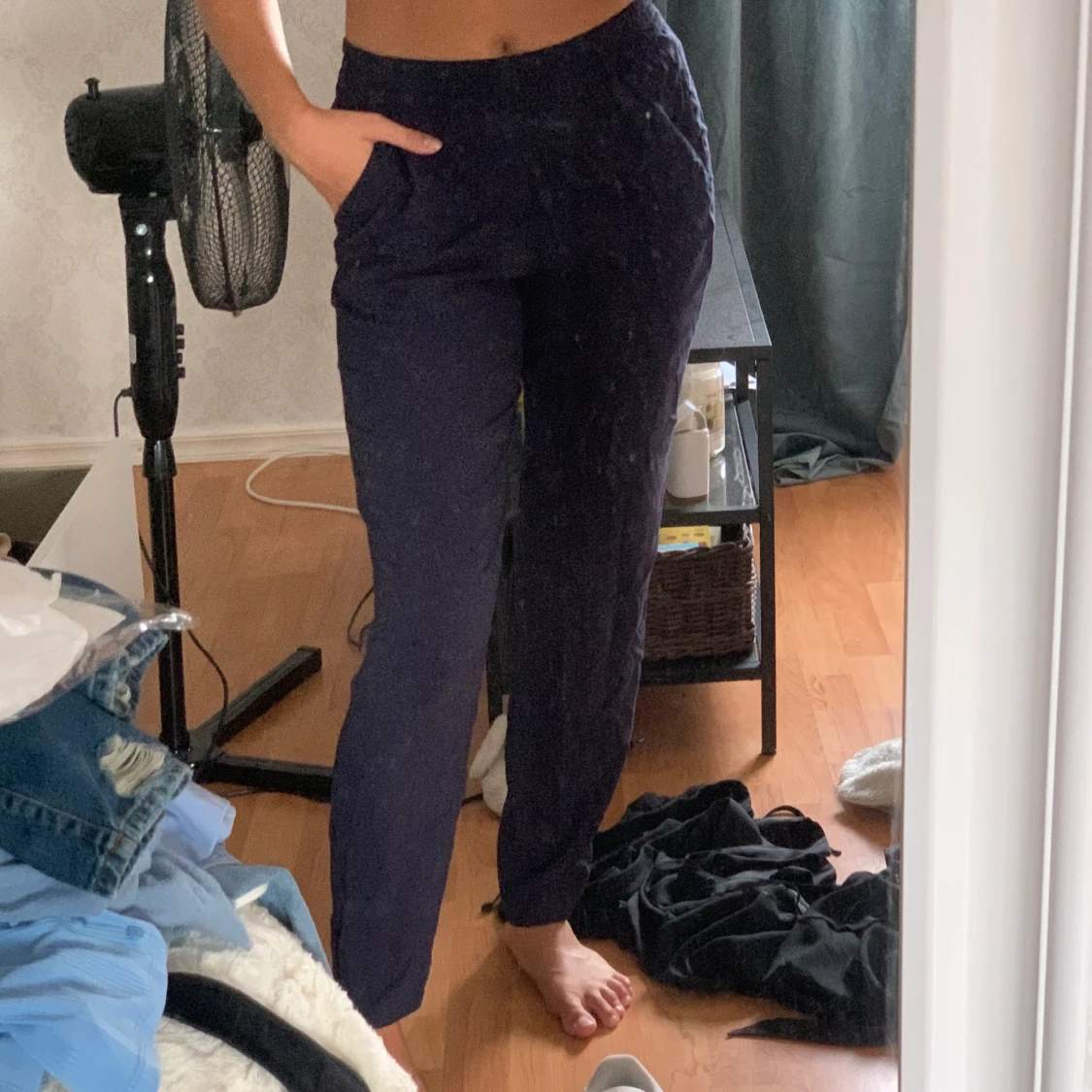 Ett par skiiit sköna byxor från hm men som tyvärr inte kommit till användning, storlek 36 och färgen är marinblå 💘 50 + frakt
