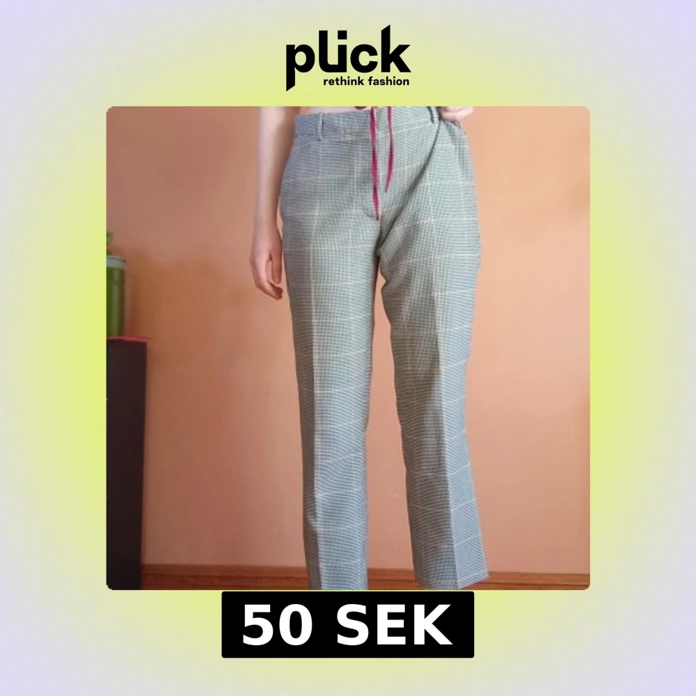 Snygga kostymbyxor från H&M i svartvitt rutigt mönster med tunna orange linjer. Oanvända då de tyvärr är för stora för mig. Finns en liten tråd på baksidan - se bild. Storlek 42 ☺️